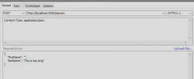 In Fiddler, Postman or any other tool you POST to localhost:5000/person with the following header -