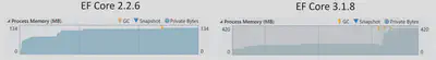 - EF Core 3.1.8 consumes significantly more memory to do the same job.