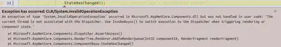 2An exception of type 'System.InvalidOperationException' occurred in Microsoft.AspNetCore.Components.dll but was not handled in user code: 'The current thread is not associated with the Dispatcher. Use InvokeAsync() to switch execution to the Dispatcher when triggering rendering or component state.'