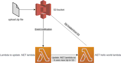 I want to have a Lambda that runs .NET code stored in a zip file in S3. I want to be able to update the zip and have the .NET Lambda run the code in the new zip. I had hoped this would be a little tick box on the Lambda, but sadly there is no such box.