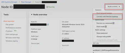 Click on the “Node ID”, then on the new page, click Node Actions, and “Connect to With Remote Desktop”.